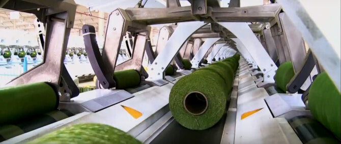Como já foi dito anteriormente, o processo de fabricação da grama sintética é bem similar às técnicas de tufagem usadas na fabricação de tapetes.